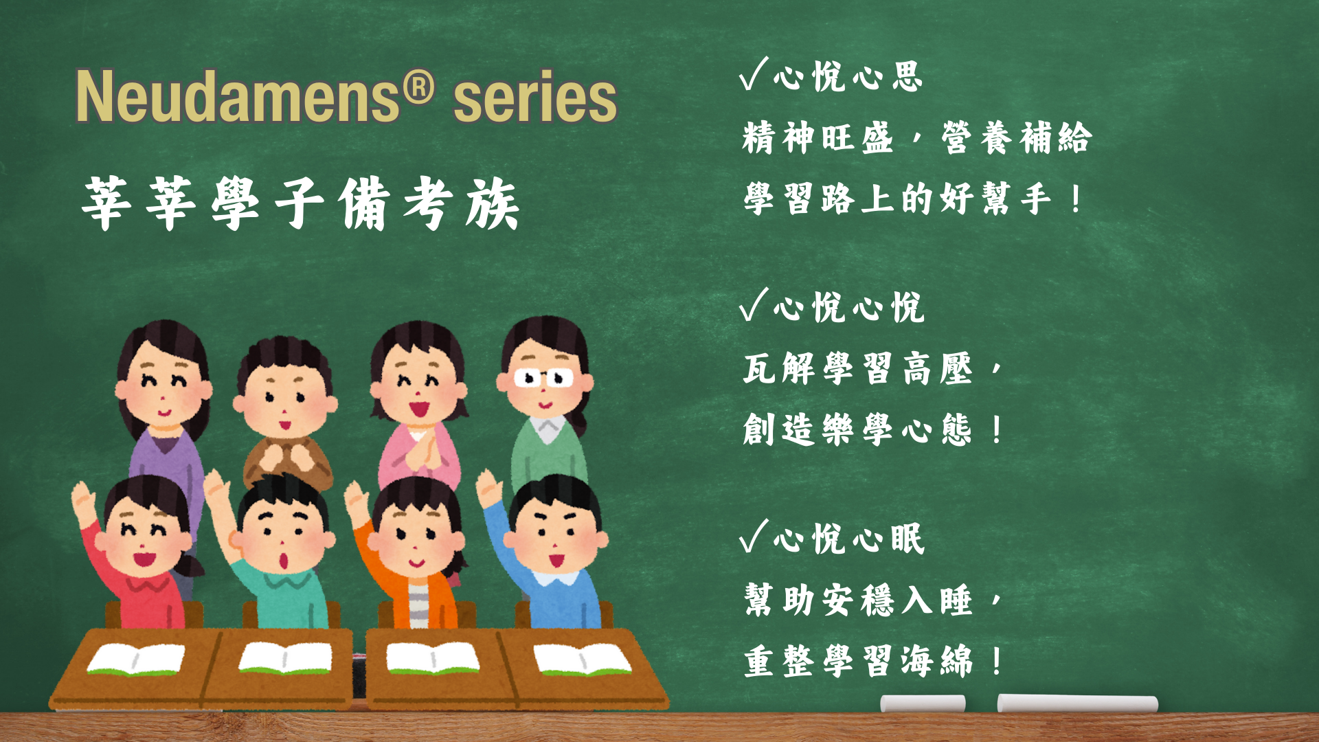 NEUDAMENS®是嚴選國際期刊報導的高功能性原料以獨家比例組合而成,是您守護全家心智健康的第一選擇。